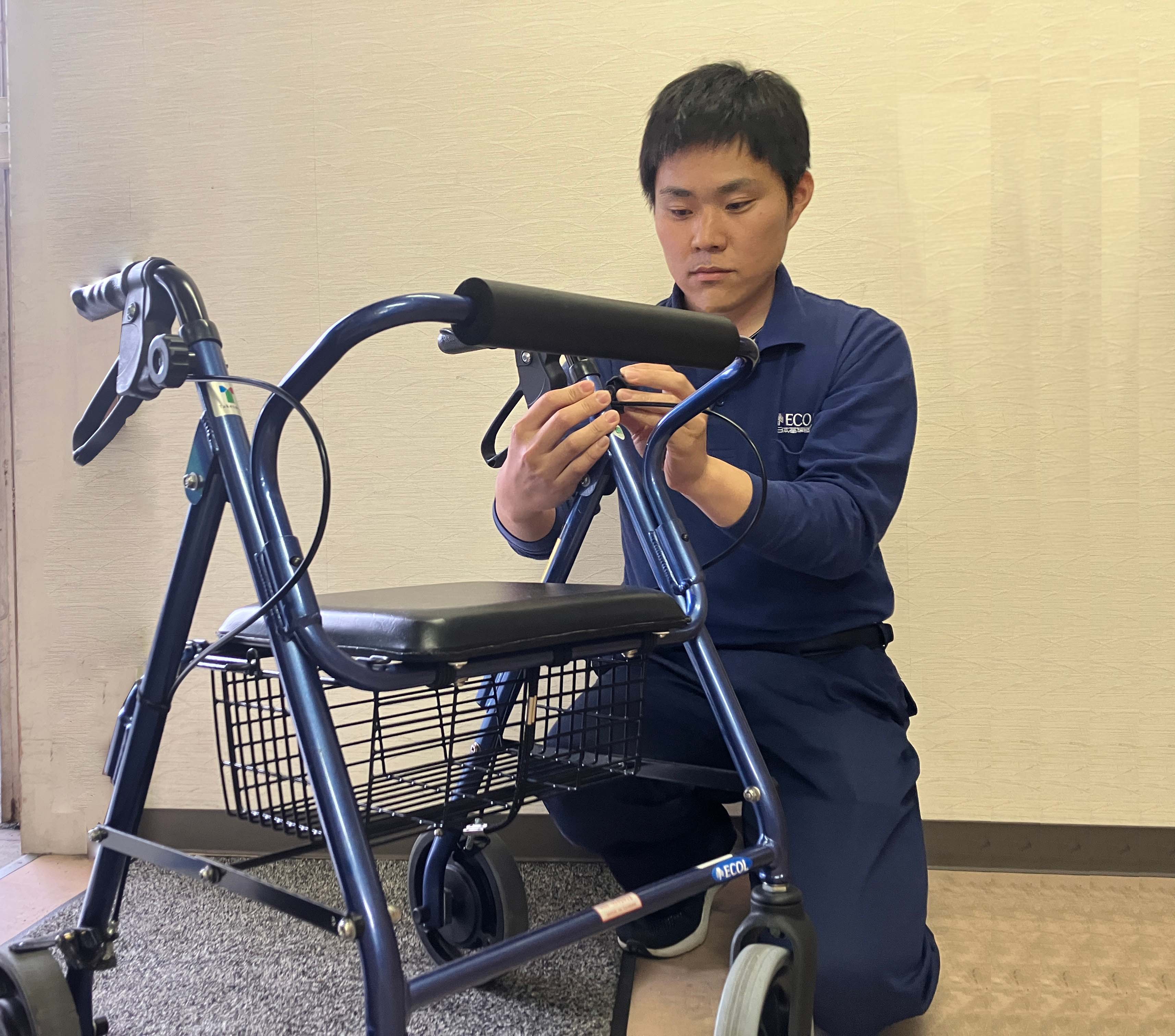 高齢化が進んでいる日本の社会において、シルバービジネス業界はさらなる成長が予測されています。そんな中、当社では高齢者の自立を支援し、ご家族の負担を軽減できる介護用品や健康器具をレンタルする『エコール事業』を主力事業に、福祉用具・介護用品・健康器具などのレンタル・販売を手がけています。幅広い品揃えやスピード感のある対応が評価され、業績は好調。広島県を中心とした中国エリアでは、確固たるポジションを築いています。今後も、より多くの方に便利な商品をお届けしていくために、新たに人材を採用します。今期、大幅増員によるサービス体制の強化を図ります。