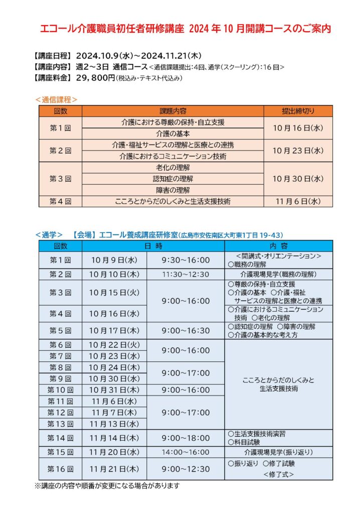 この度当社では、介護資格取得のための「エコール介護職員初任者研修講座」を